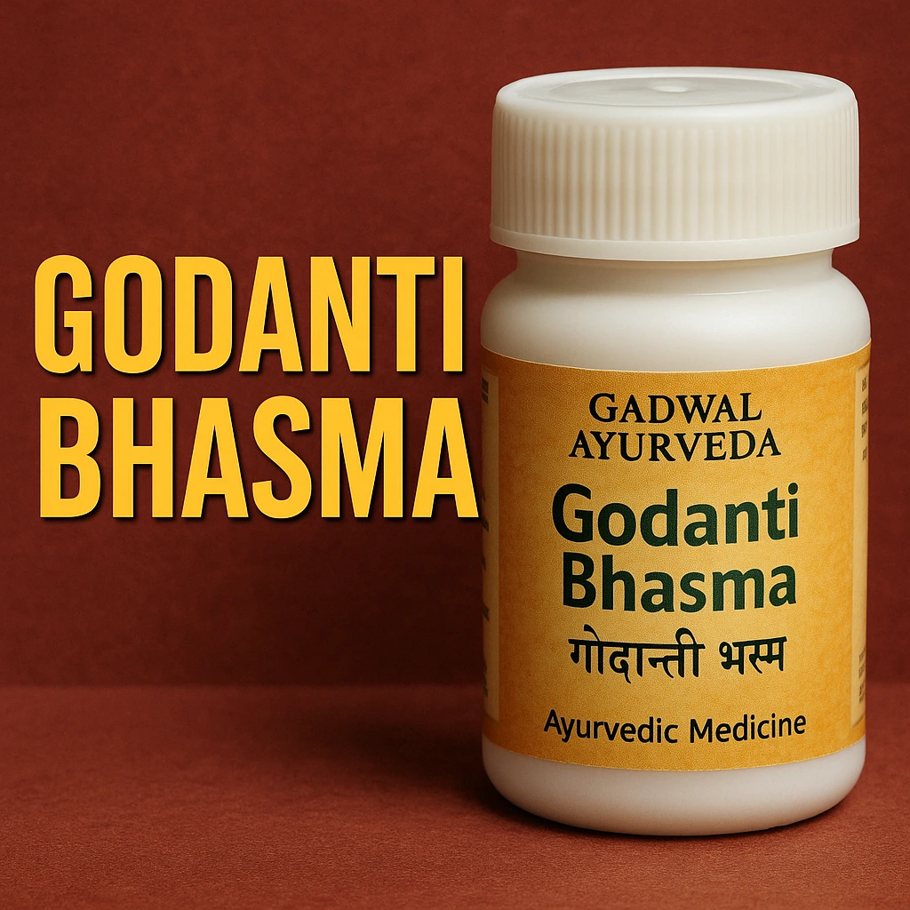 Godanti Bhasma is an Ayurvedic metallic/mineral preparation made from purified gypsum (calcium sulfate dihydrate) that is processed via classical Ayurvedic methods.
